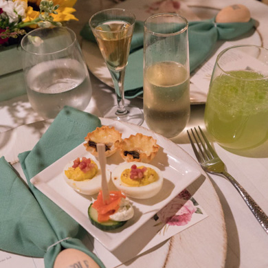 The celebration embraced the arrival of spring with a cheerful and inviting atmosphere. The event featured pastel-colored decorations, fresh floral arrangements, and classic Easter symbols like bunnies and eggs, creating a festive setting for guests. The event combined fresh ingredients, creative pairings, and a festive atmosphere to create a memorable Easter celebration.