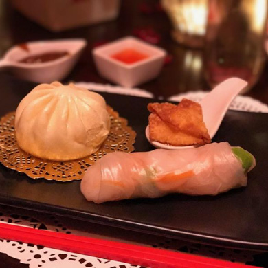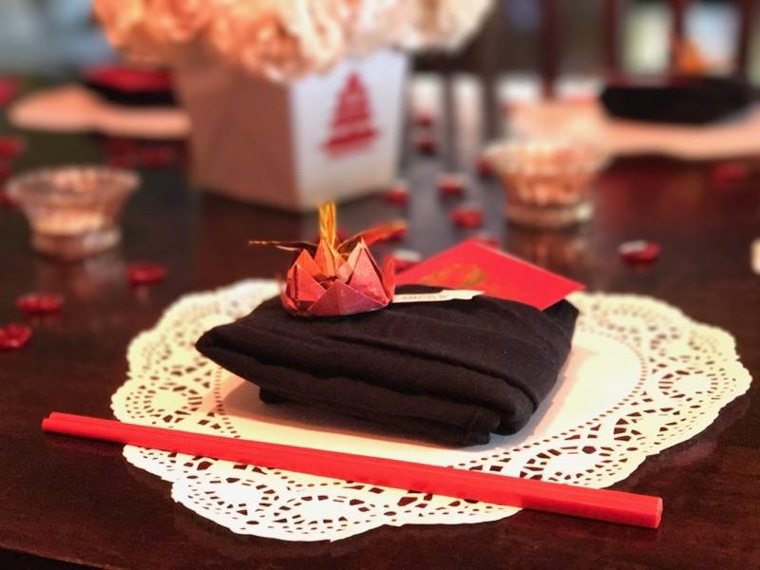 - Highlights: Asian food, drinks, origami favors