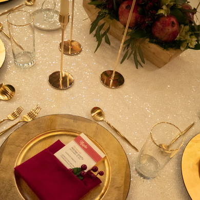 Guests entered a cozy winter retreat where soft lighting and seasonal décor set a welcoming scene. The evening featured a curated menu of rich, comforting dishes paired with thoughtfully selected cocktails. A “favorite things” gift exchange added a playful and personal touch, with each guest sharing a small item they love. Thoughtful details—like custom place settings—added intimacy and charm, creating a memorable winter gathering that felt both elegant and heartfelt.